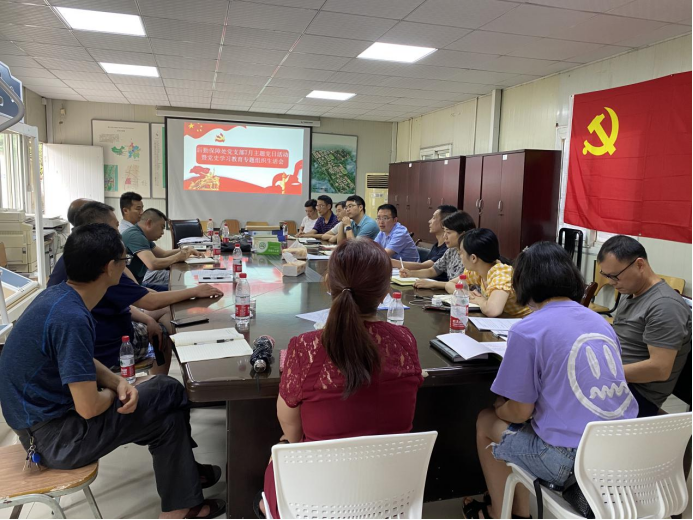 7月15日后勤保障处党支部在会议室开展“建党百年,学史力行”7月主题党日活动暨党史学习教育专题组织生活会,集中学习《论中国共产党历史》、《毛泽东、邓小平、江泽民、胡锦涛关于中国共产党历史论述摘编》部分章节,学习研讨《习近平总书记在庆祝中国共产党成立100周年大会上的讲话》,学习《中国共产党组织工作条例》,学习《中国共产党党徽党旗条例》,学习《习近平:在“七一勋章”颁授仪式上的讲话》。
