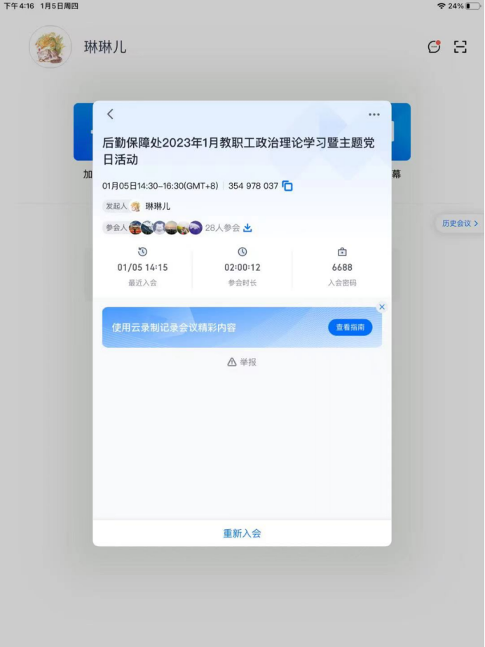 2023年1月5日下午,后勤保障处组织开展教职工1月政治理论学习暨支部主题党日活动,会议主题为“开展社会实践,发挥党员作用”。后勤保障处处长朱强同志主持会议,副校长黄爱明同志参加会议,本次会议在腾讯会议线上举行。