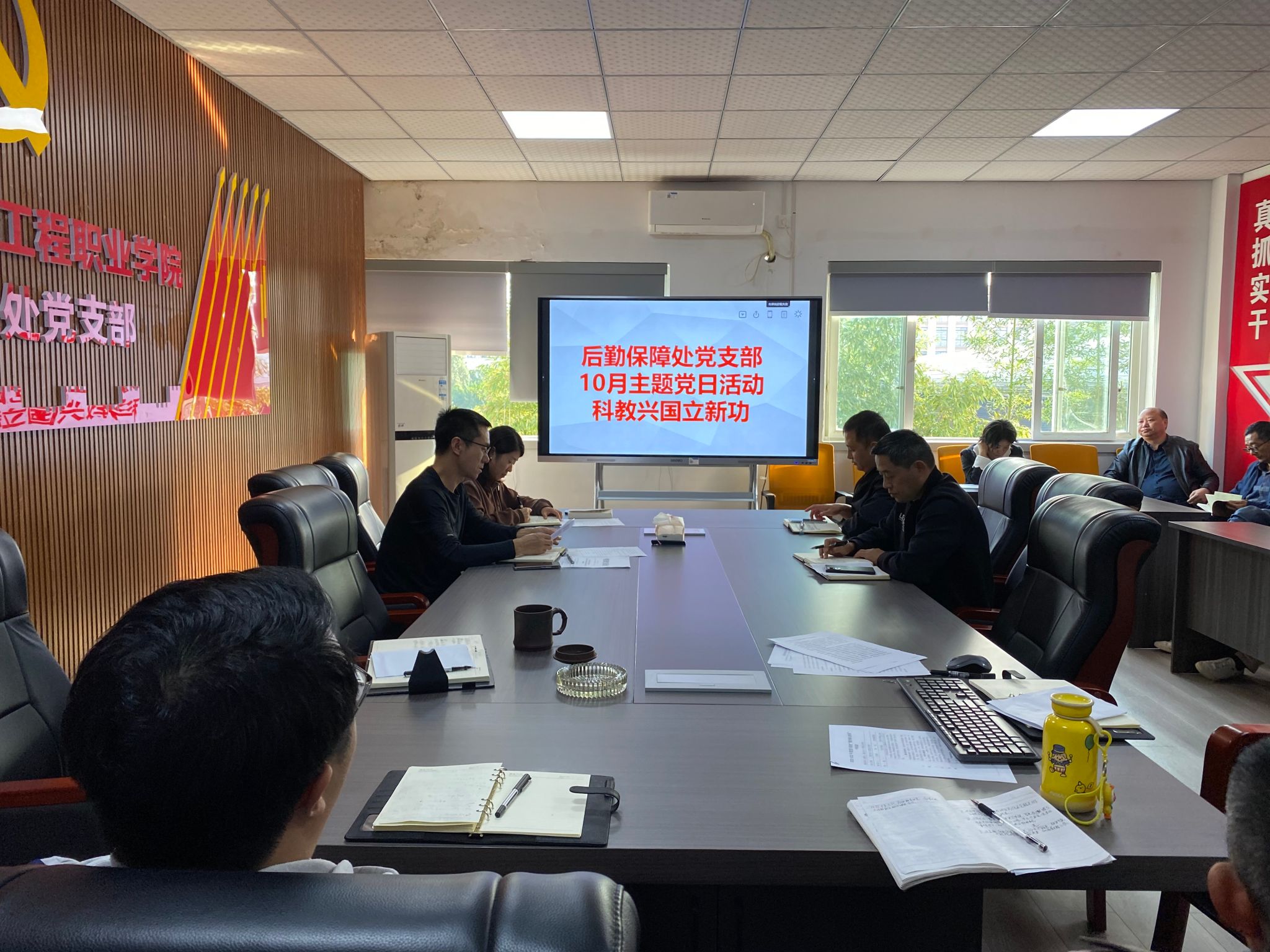 2023年10月31日下午,后勤保障处组织开展教职工10月政治理论学习暨支部主题党日活动,会议主题为“科教兴国立新功”。后勤保障处处长朱强同志主持会议,副校长刘洪光同志参加会议。