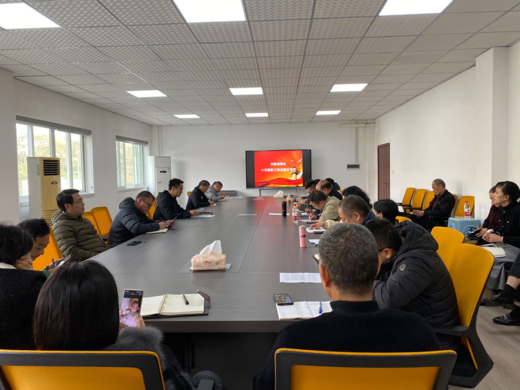 2023年11月23日下午,后勤保障处组织开展教职工11月政治理论学习暨支部主题党日活动,会议主题为“斗争精神迎挑战”。后勤保障处处长朱强同志主持会议。