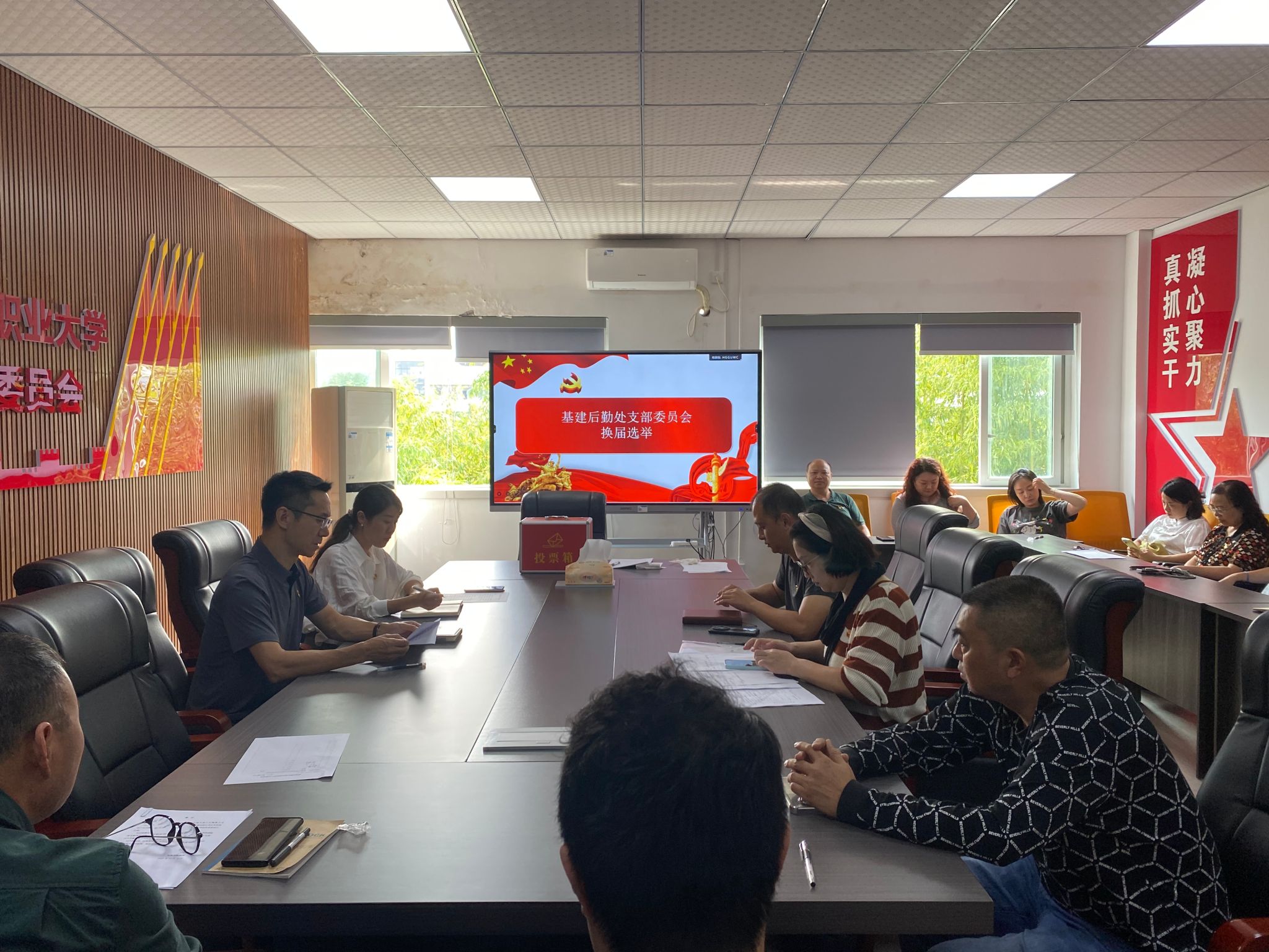 与会党员认真审议并一致表决通过了《中共重庆电子科技职业大学基建后勤处支部委员会党员大会选举办法(草案)》以及大会监、计票人员名单。在听取委员候选人基本情况后,选举程序正式开始。监、计票人清点人数、检查票箱、分发选票,与会党员本着高度负责的态度,以无记名投票方式,最终选举产生了朱强、邹洁、田娟、李琳、周晓英五位同志当选基建后勤处支部委员会新一届委员。