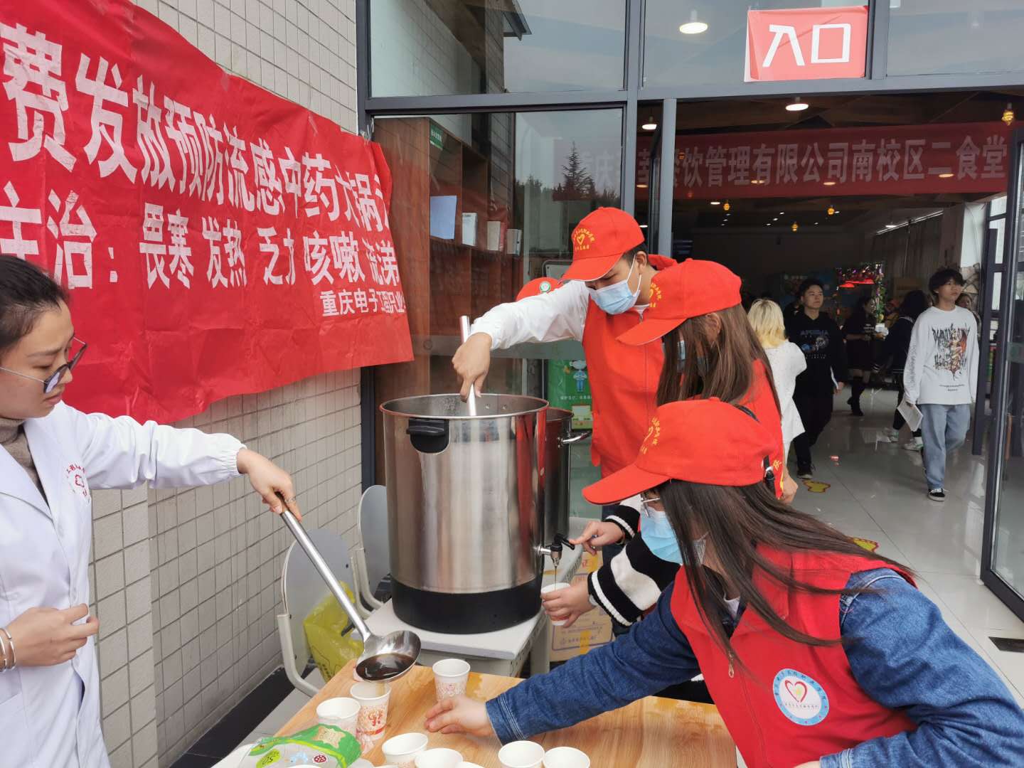 秋冬季是流感的高发季节,且学校人员聚集,是流感及各种呼吸道疾病的高发场所。卫生科与学校食堂、校团委合作,为全校师生员工准备了预防流感的中药汤剂,连续三天(10月21、22、23日)分别在南校区食堂平层入口处和北校区食堂一楼入口处免费发送,每天上午11:30时起直至送完为止,三天送药共计3000杯左右。