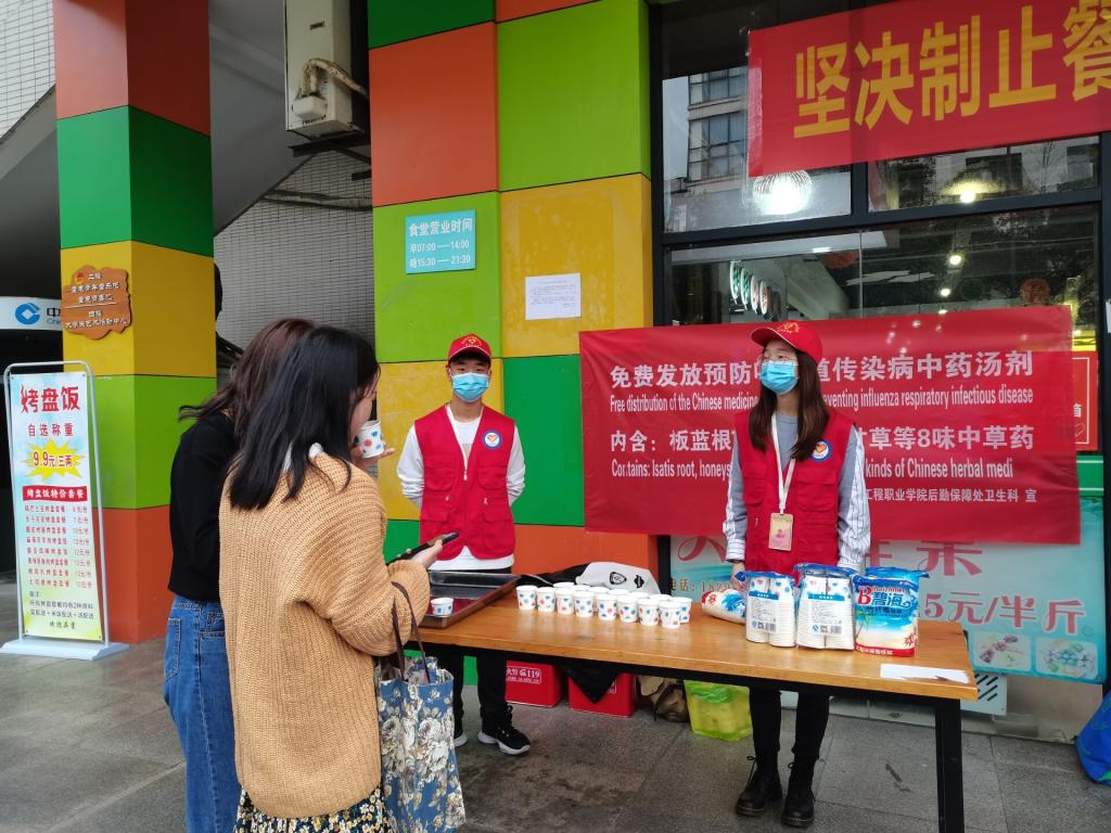 春季是流感的高发季节,且学校人员聚集,是流感及各种呼吸道疾病的高发场所。卫生科与学校食堂、校团委合作,为全校师生员工准备了预防流感的中药汤剂,连续三天(3月16、17、18日)分别在南校区食堂平层入口处&北校区食堂一楼入口处免费发送,每天上午11:30时起直至送完为止,三天送药共计3000杯左右。