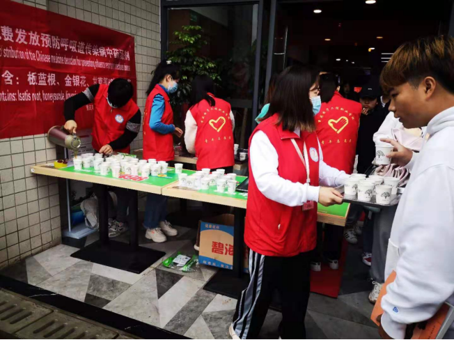秋季是流感的高发季节,且学校人员聚集,是流感及各种呼吸道疾病的高发场所。卫生科与学校食堂、校团委合作,为全校师生员工准备了预防流感的中药汤剂,连续三天(10月11、12、13日)每天上午分别在南校区食堂平层入口处&北校区食堂一楼入口处免费发送,三天送药计3200余杯。