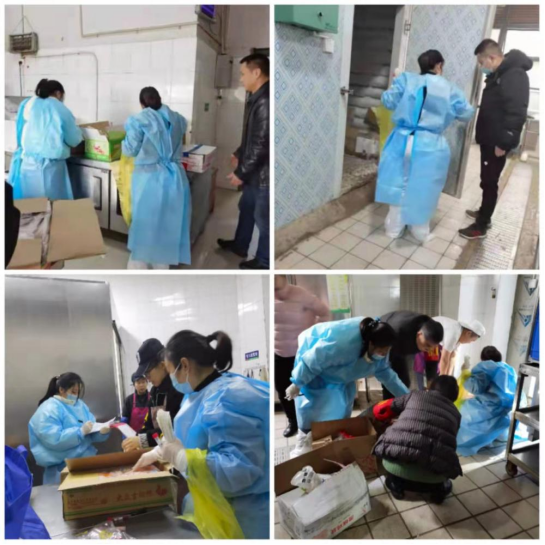 由于重庆本地出现了感染者,为有效进行疫情防控,学校对全校师生的行程进行了管控,以致于南北校区食堂用餐人数增加,各食堂除了保证全校师生的供餐工作外,还开展了以下工作:1、为参与防疫工作的工作人员及隔离人员提供送餐服务;2、坚持每日对食堂大厅、后厨等食堂区域进行全面消毒;3、配合了沙坪坝区疾控中心工作对食堂环境及冻库进行了核酸检测;4、组织食堂员工进行核酸检测及加强新冠疫苗的注射。尽管工作量增加,各食堂顶住了压力顺利完成供餐工作。另外,为了加强防疫工作膳食科组织各食堂学习了学校对于防疫工作的相关文件,并要求各食堂对防疫工作继续保持高度重视,加强食堂清洁卫生工作,加强食堂洗消工作,严格把控原材料来源,加强用餐高峰期的巡查,加强员工的行程管控等工作,严格按照防疫要求开展防疫工作。