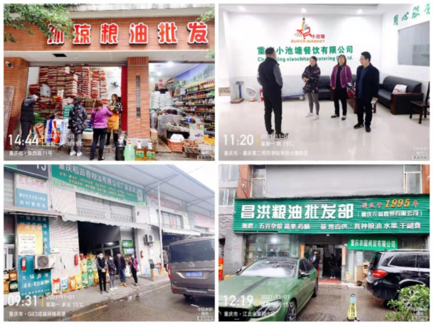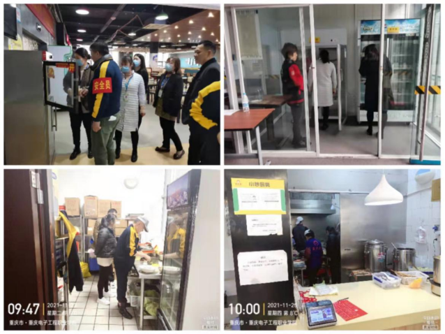对于食堂的清洁卫生、食材品质、及日常操作行为等方面进行检查,并对发现的问题及时督促整改。本月着重检查:库房存货情况,冻库存货情况,洗消工作是否标准,清洁卫生等,并要求不符合标准的食堂立即整改。本月特别对食堂大宗物资(米、面、油等)采购渠道进行了抽查,并到重庆稻田香粮油有限公司等6家供货单位进行实地考察,了解进货情况,经查6家供货单位均资质齐全,并且拥有重庆教育后勤协会颁发的高校准入证。