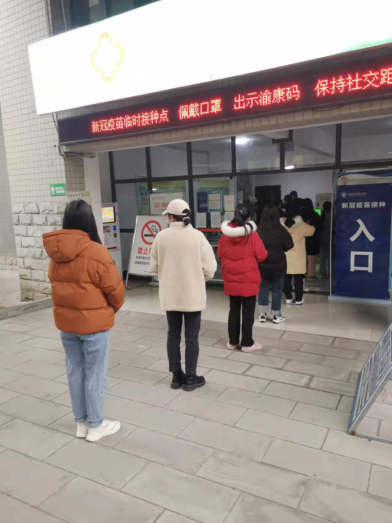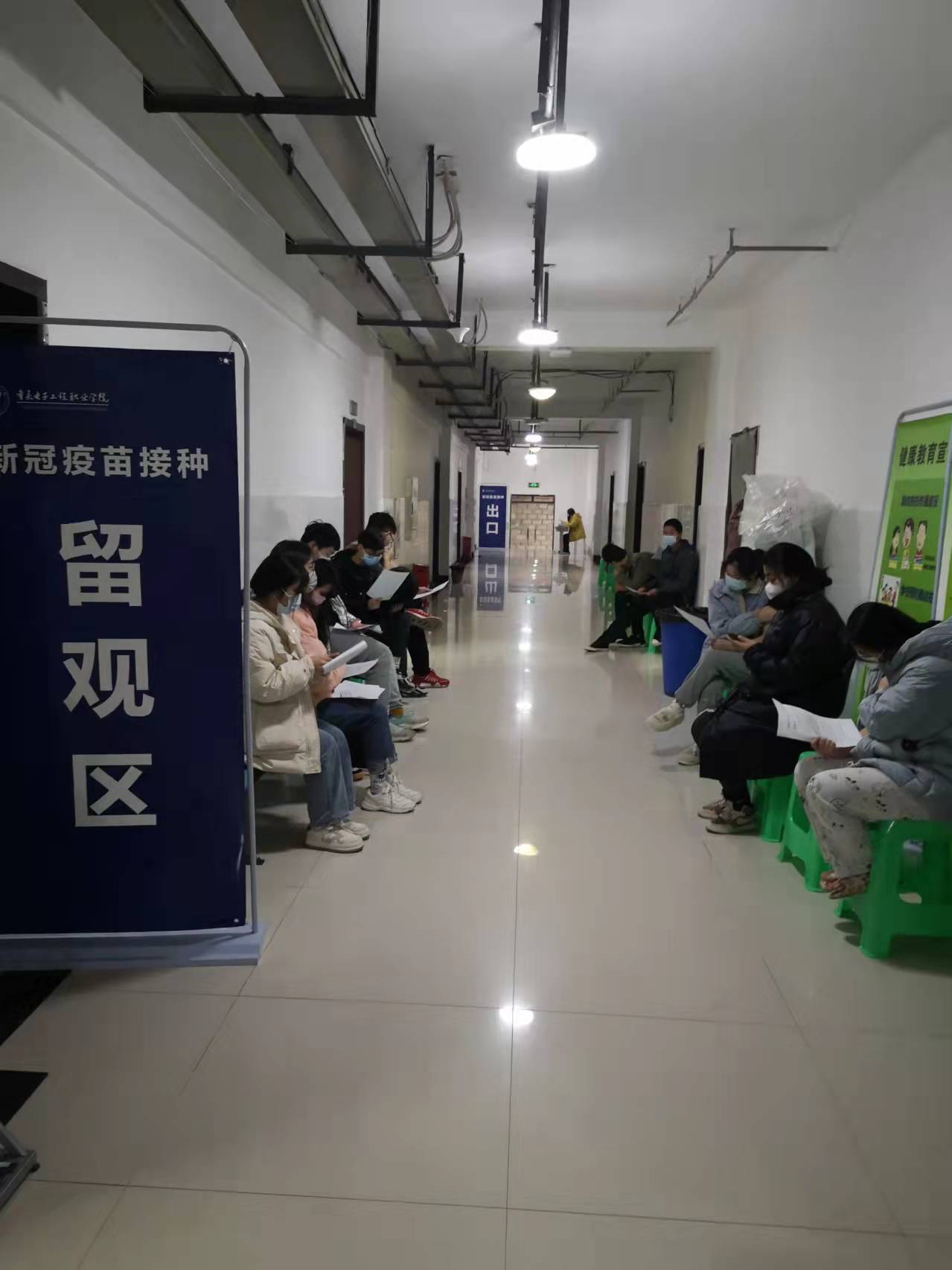 卫生科与陈家桥社服中心、陈家桥医院合作,于2022年1月12日9点至17点开展新冠疫苗临时接种工作,卫生科LED屏幕滚动播放“新冠疫苗临时接种点,配戴口罩,出示渝康码,保持1米距离排队”字幕,设置登记点、接种室、留观区,确保新冠疫苗接种工作安全、有序推进。当日有序完成新冠疫苗接种473剂,为保障全校学生、教职工的身体健康和生命安全,构筑起了坚不可摧的免疫屏障。