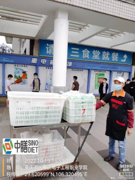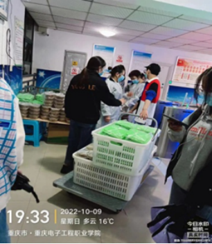 4、封控期间服务保障给力,行动迅速。10月9日,10月13日-19日,在校静态管理学生楼栋所有的用餐全部由食堂配送。膳食科组织食堂员工投入到静态管理学生保障餐的供应中去。时间紧、任务重、人手缺,食堂全体员工在后勤保障处的带领下,克服一切困难,共计配送早中晚餐94665份,按学校要求保质、保量的完成了在校静态管理学生一日三餐的配送工作。
