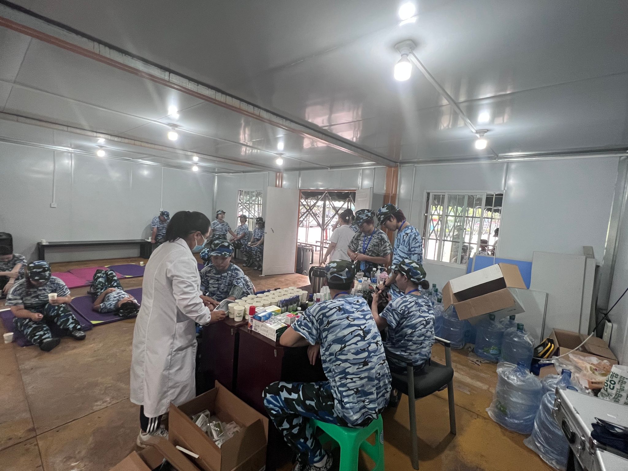为保障军训顺利开展,为军训新生、教官提供良好的后勤医疗保障服务,后勤保障处卫生科提前部署,根据历年军训的医疗保障经验,安排医生现场值守,提前准备了可能需要的药物和设备,如防中暑药、跌打损伤药、胃肠道用药、感冒药、口服补液盐、葡萄糖、氧气罐,体温计、血压计和除颤仪等。截至9月28 日军训结束,医疗点一共接诊学生1040人次,公务保障车和120急救车共接送转诊学生24人次,圆满完成医疗保障任务。
