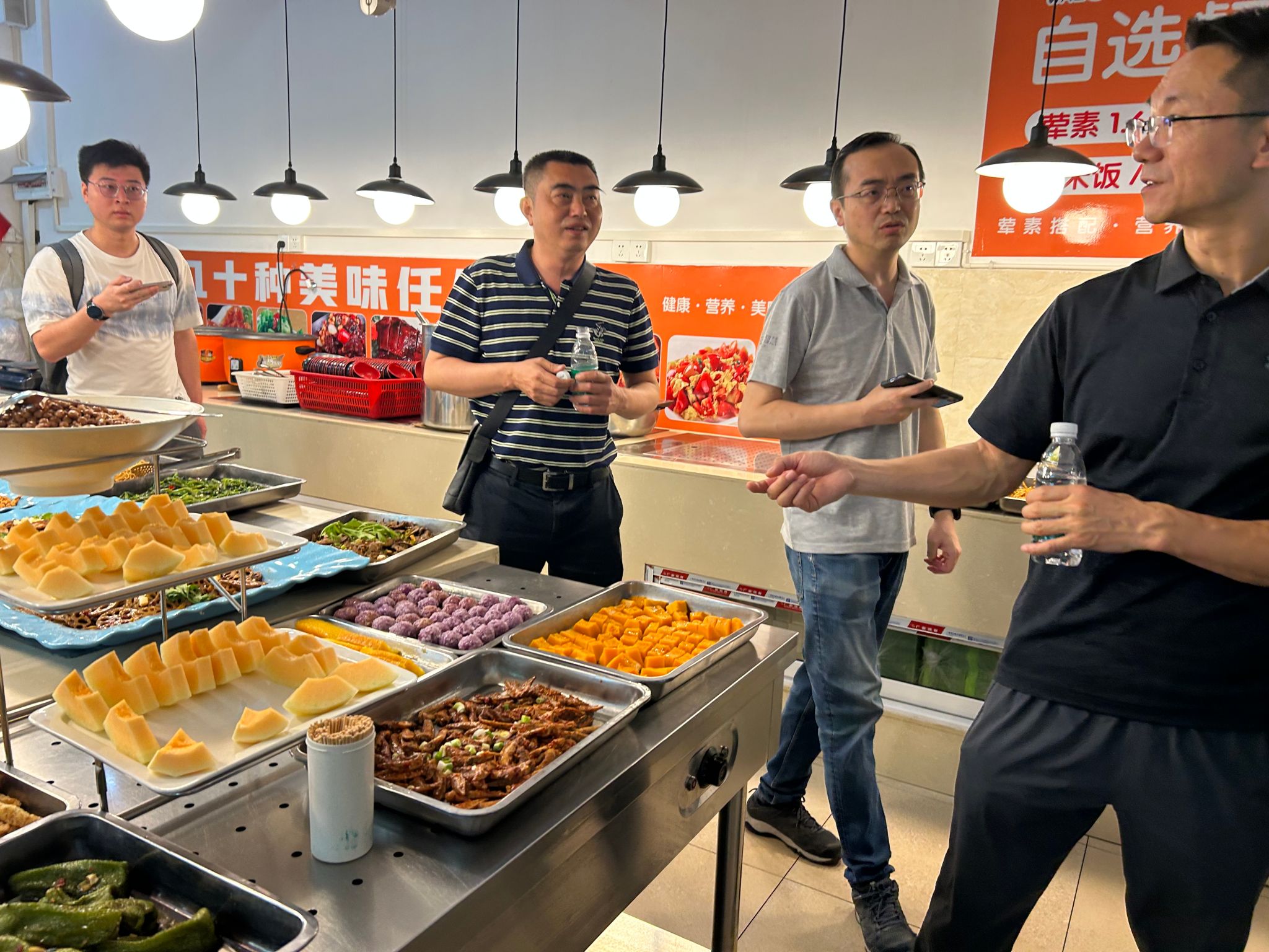 重庆市水利电力职业技术学院后勤处处长吴才轩、食堂管理人员参与了调研交流,学校后勤保障处一行人参观考察了该校教工食堂和学生食堂,感受了其食堂智慧化系统的运行和科学细致的管理。