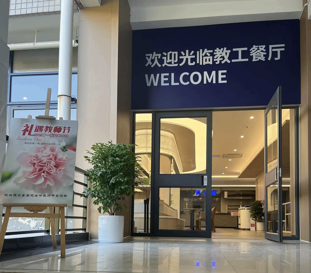 9月10日我们迎来了第40个教师节,为弘扬新时代尊师重教新风尚,表达对辛勤耕耘的广大教师们的亲切关怀,正值学校食堂改造升级完成,以崭新的面貌服务全校师生,学校教工餐厅用特别的方式给老师们送去节日的祝福,庆祝教师节的到来。