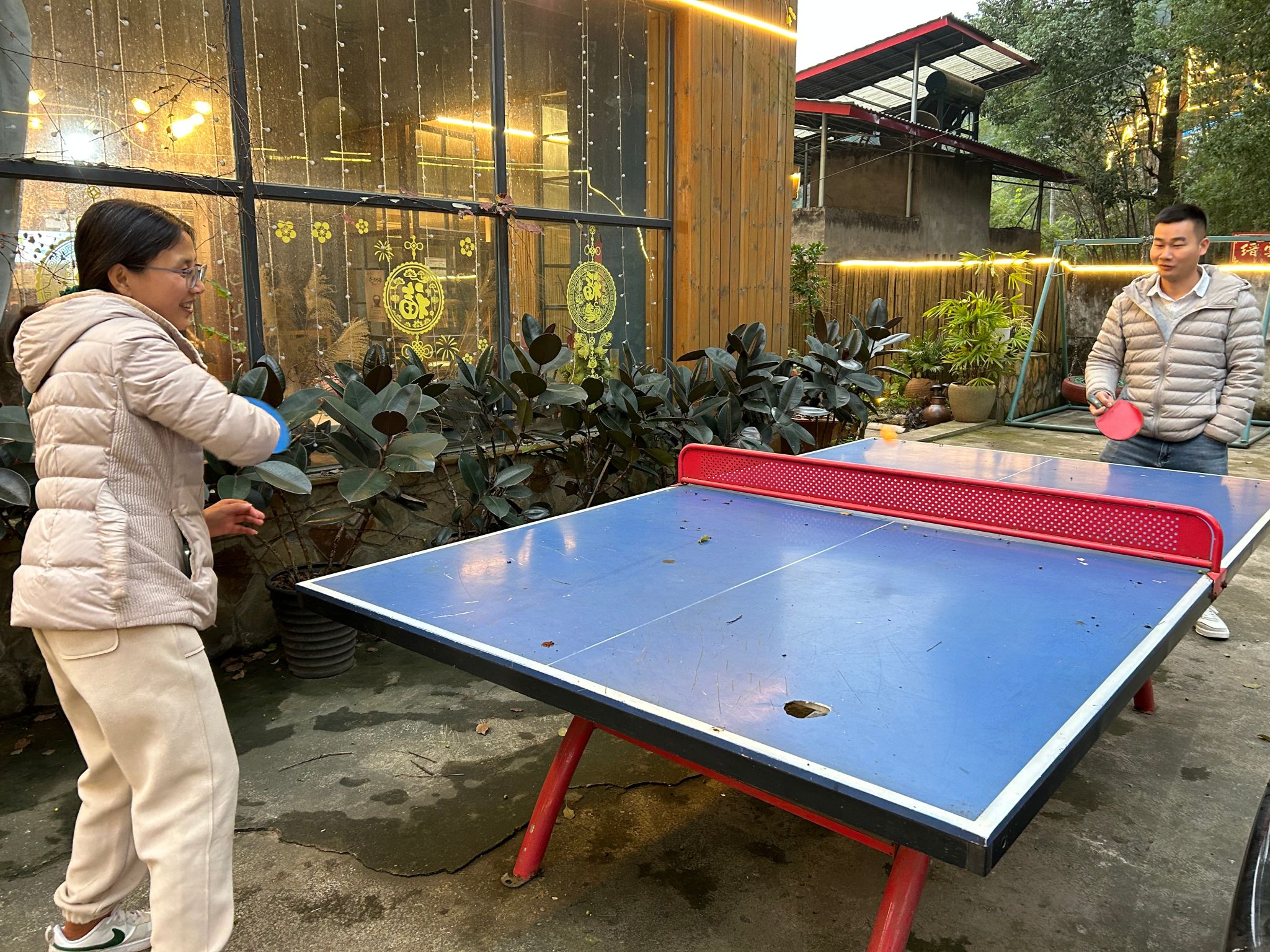 12月份的缙云山脉云雾缭绕,群山苍茫。沿着蜿蜒小路,大家呼吸着清新自然的空气,欣赏着冬日景色和隐于青山间的水村山郭,体验着爬山带来的激情和快乐。抵达远离城市喧嚣的无界山庄农家小院,感觉到了艺术和自然的完美结合。大家参加了乒乓球、五子棋、台球等趣味运动,又陶醉在艺术的熏陶里,既愉悦身心又体验了趣味运动的激情和快乐。
