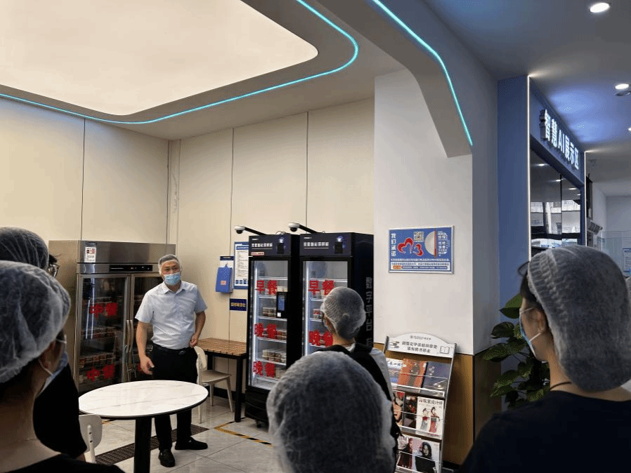 学生代表首站走进桐映园一食堂。智慧食堂系统成为全场焦点:智能验收系统全程可视化记录食材入库流程,实时更新库存数据,一旦食材数量不足或临近保质期,系统立即触发预警,从源头确保食材新鲜优质。智能留样柜更是“黑科技”加持,自动生成包含时间、物料、责任人等信息的留样记录,并同步抓拍留样过程、录制视频,实现食品安全全流程可追溯。