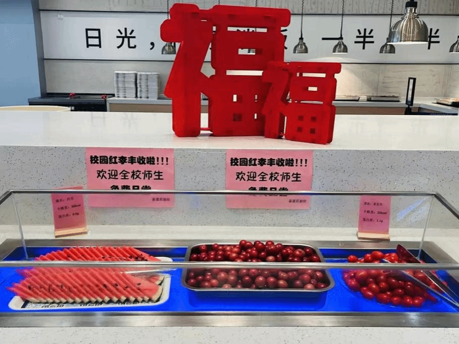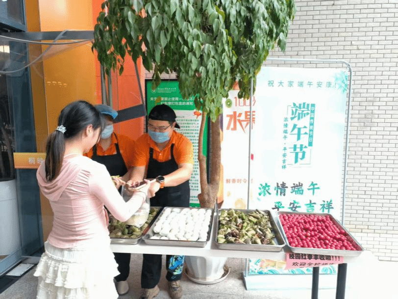 端午前夕,基建后勤处组织采摘校园红李子,在各食堂免费供应。软糯的粽子搭配酸甜的红李,交织出独特的端午风味,增添节日乐趣。