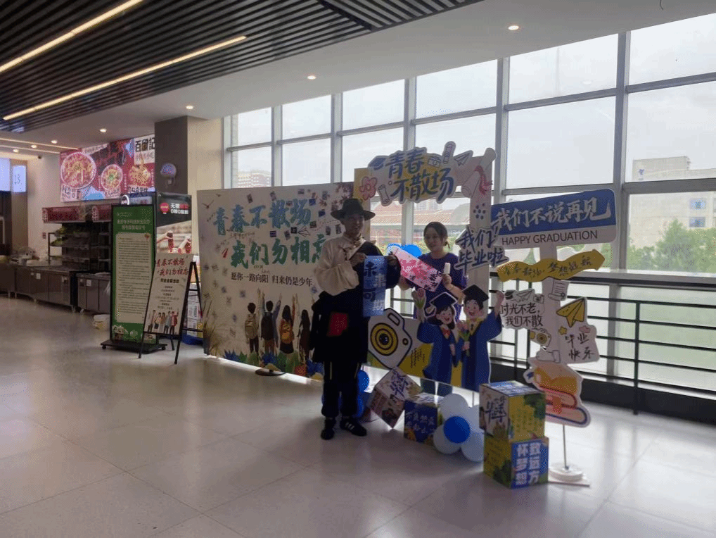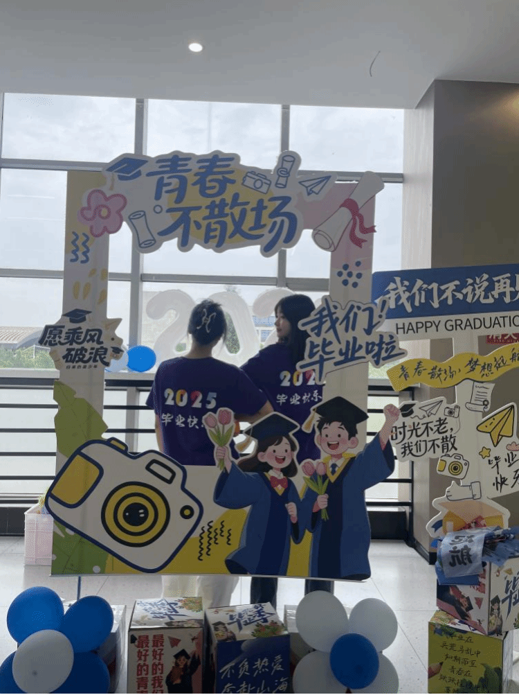 毕业纪念活动区:毕业生们在毕业寄语墙上留下真挚心声,在照片记忆墙前驻足回味,在专属合影打卡点定格同窗情谊。这里,成为了大家青春故事的温暖注脚。