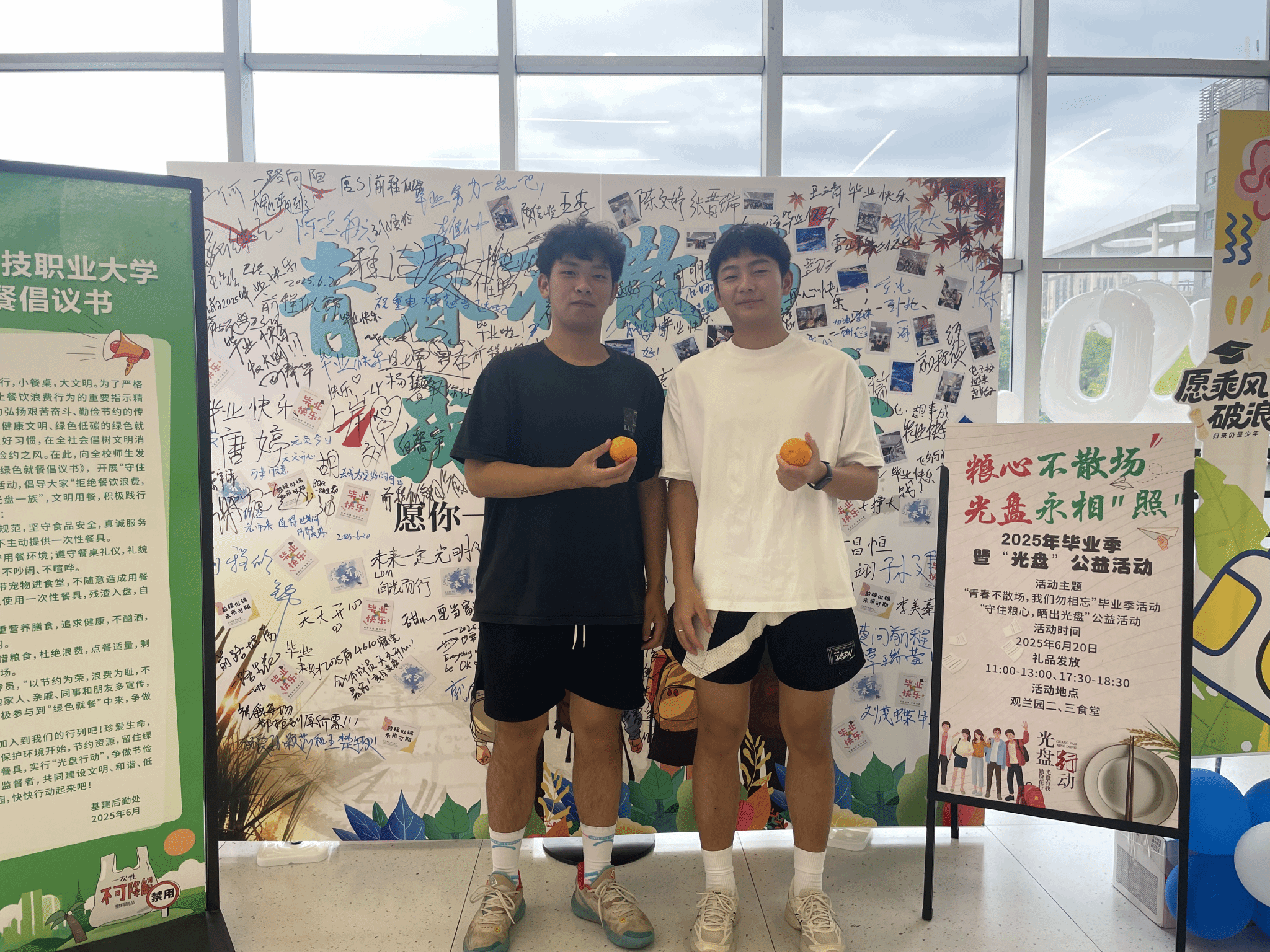 暖心祝福派送:完成“光盘”的同学,还收到了免费发放的橙子。这份寓意“心想事成”的甜蜜礼物,承载着母校对毕业生未来人生圆满、前程似锦的美好祝愿,为惜别时刻增添了一份温情。