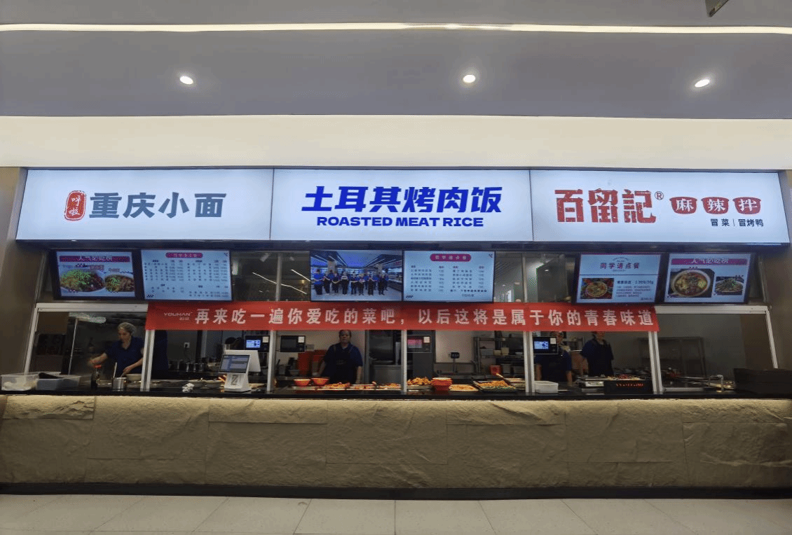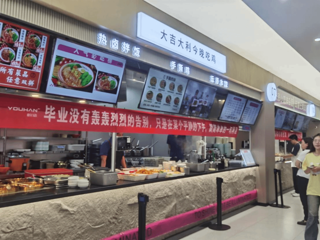 难忘视听氛围:食堂里回荡着熟悉的校园歌曲和精心制作的毕业季视频。17条饱含深情的主题横幅无声诉说着母校的牵挂,编织着离别的序曲与祝福的乐章。