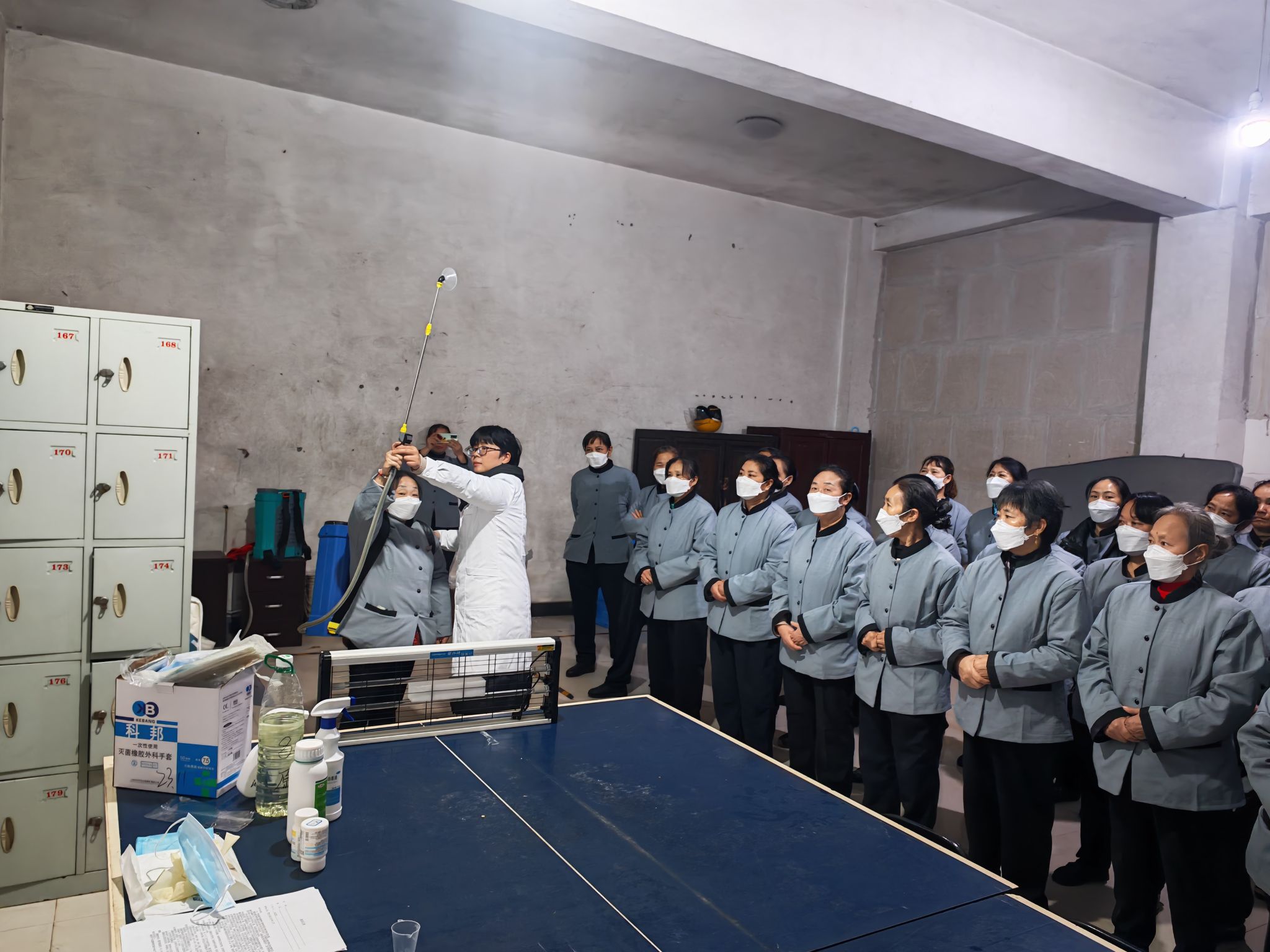 本次培训采用“理论讲解+实操演示+现场演练”相结合的方式。校医用通俗易懂的语言解析专业知识,结合实例分析不规范操作可能带来的问题,现场演示消毒剂配制及喷雾消杀等标准流程,并及时纠正错误操作。参训人员分组进行了教室、寝室等场景的模拟消毒演练。
