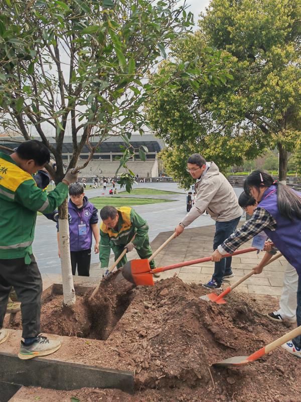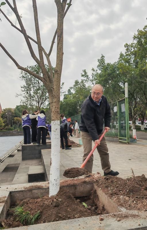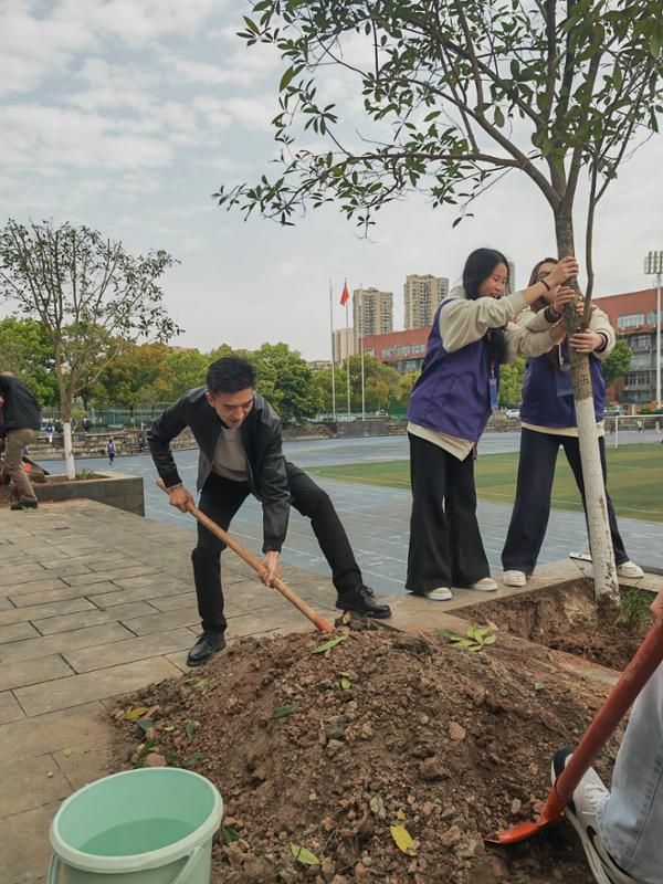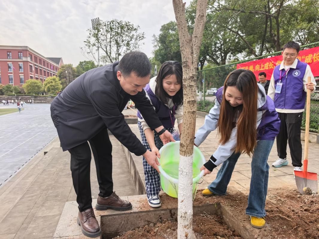 活动现场,师生们分工协作、扶苗培土、浇水灌溉,以实际行动为校园增添新绿,欢声笑语洋溢在春风之中。