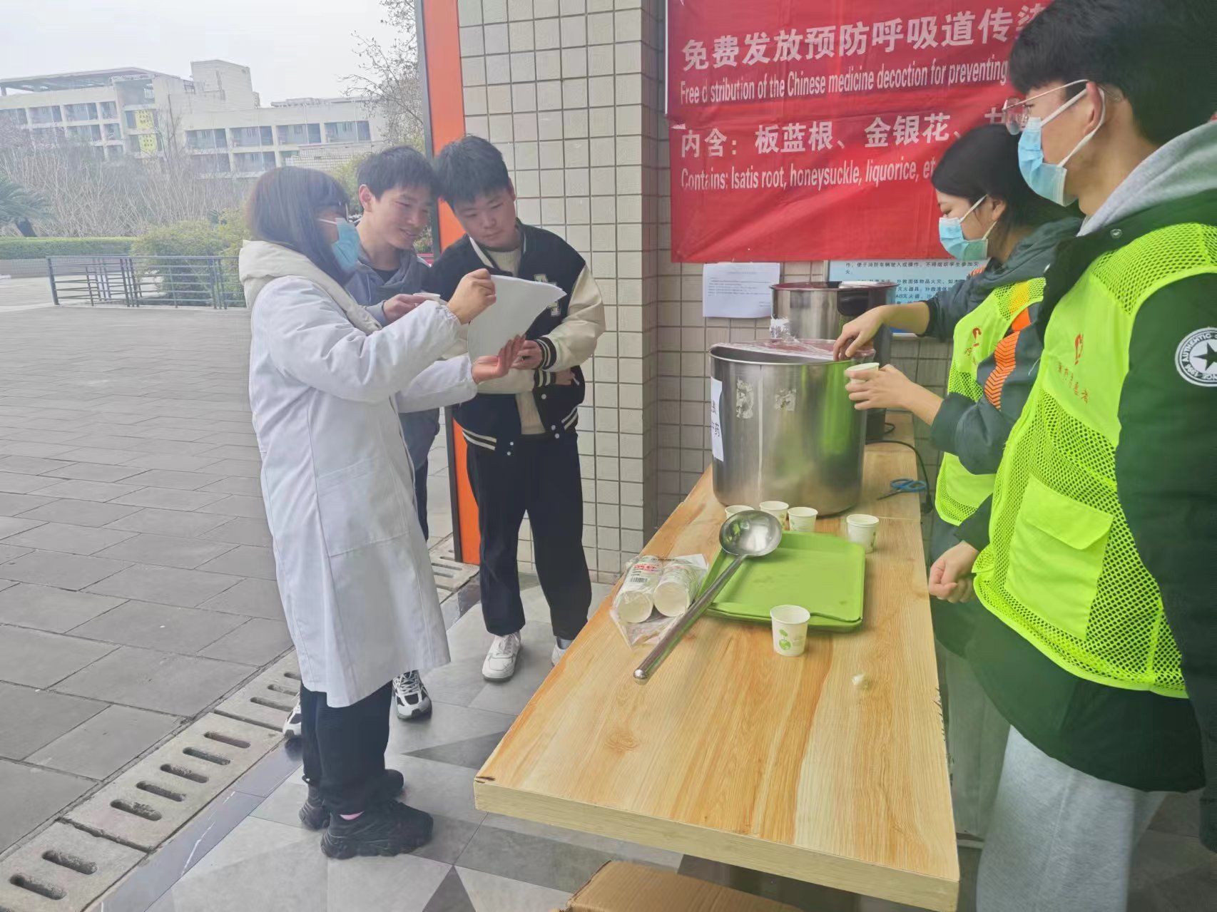 春季是流感及各种呼吸道疾病的高发季节,为了守护校园平安,切实保障全校师生的健康安全,后勤保障处卫生科、膳食科与学工部合作,为全校师生免费发放预防流感中药汤剂。3月4日至3月6日,学校南二、北一食堂严格按照医生指导的煎药流程熬制预防流感的中药汤剂,医务人员和志愿者分别在南校区食堂平层入口处和北校区食堂一楼入口处免费向师生们发送。师生们积极领取,3天送药共计约3060杯。