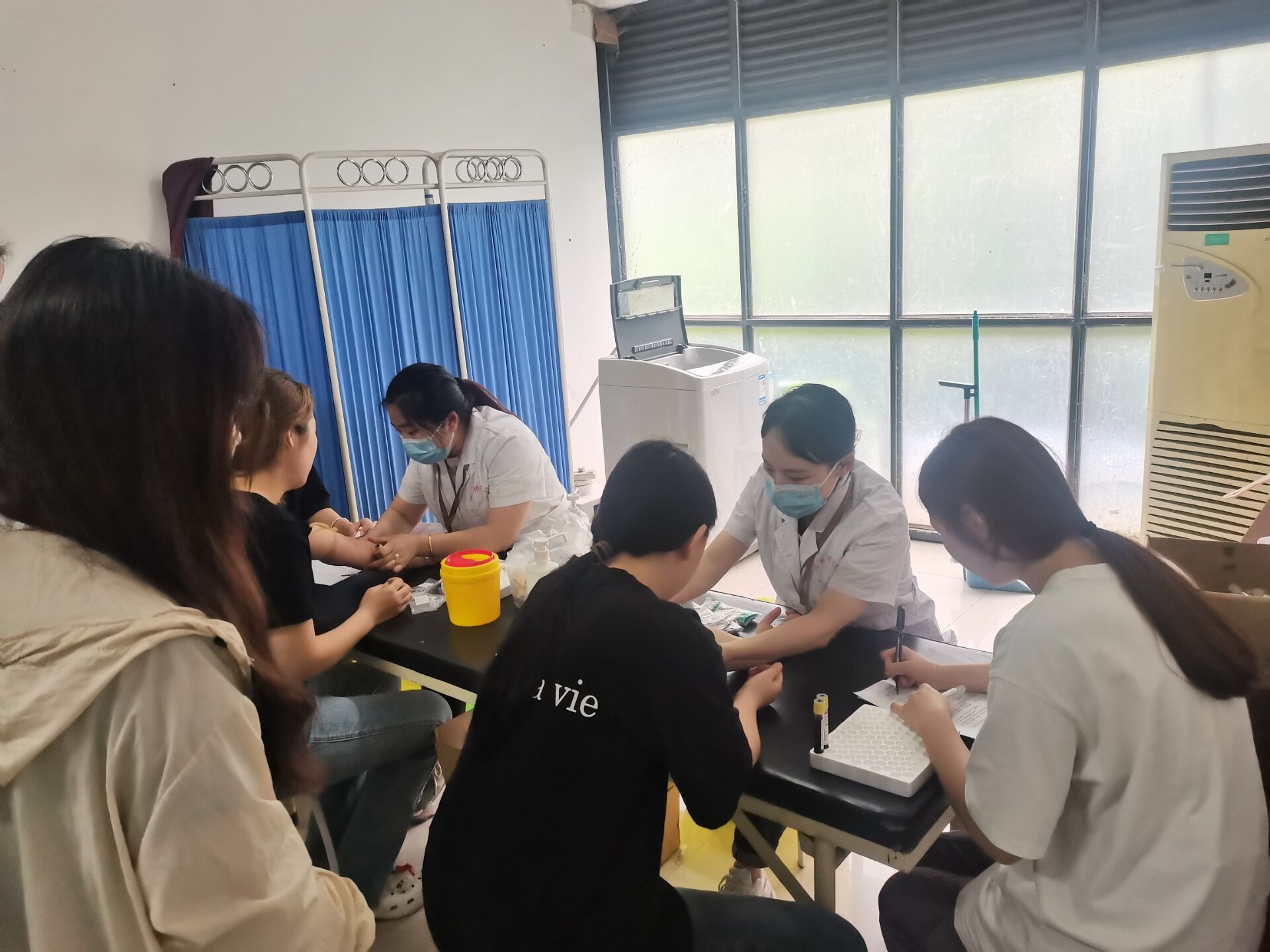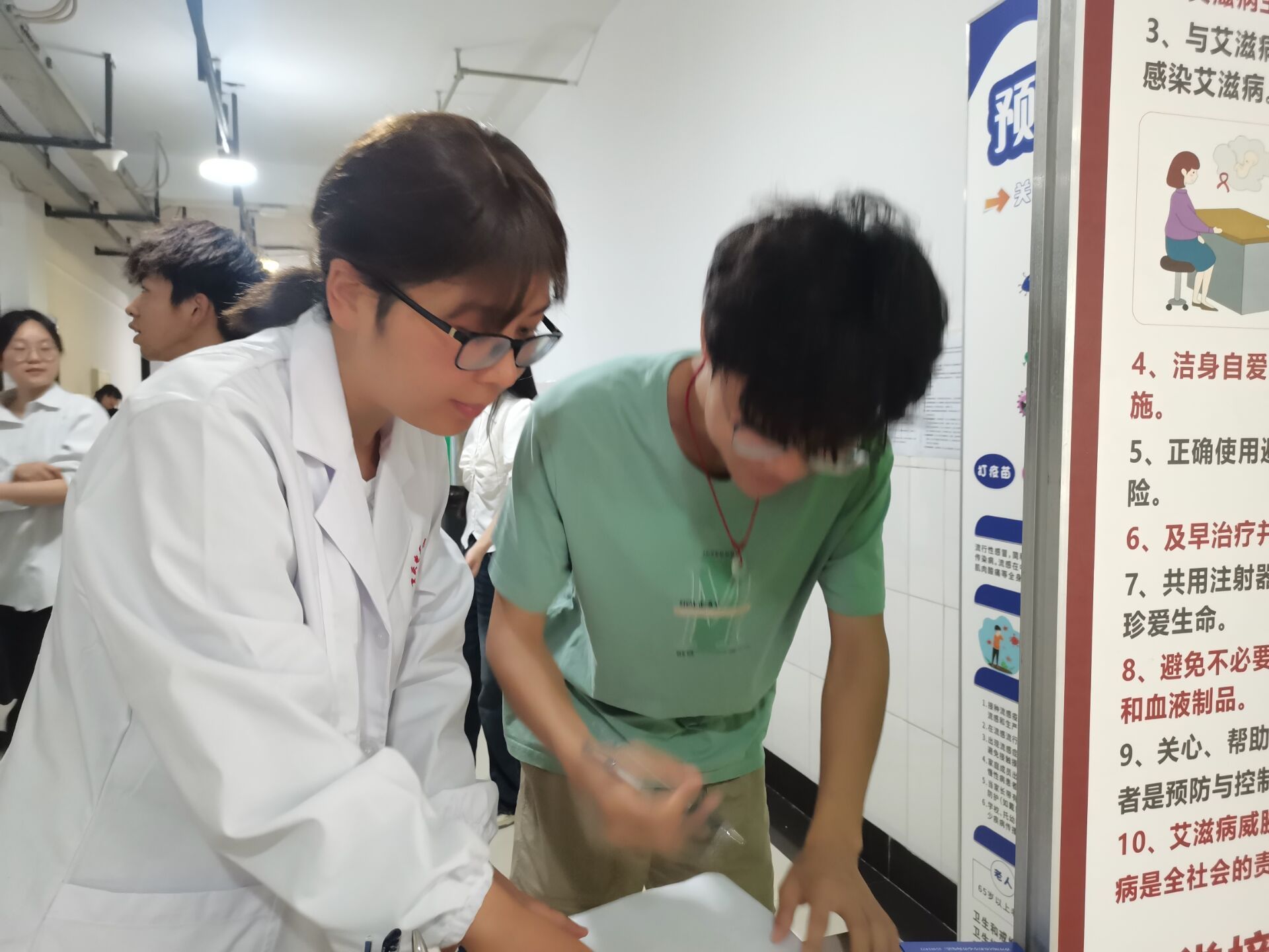 58日,按沙坪坝区疾病预防控制中心相关要求,后勤保障处与财经管理学院陈家桥医院合作,在校卫生科开展2024年青年学生哨点监测遵照整群抽样原则,抽取班级内的学生以匿名的形式进行艾滋、梅毒、丙肝监测调查医务人员向活动现场的学生普及调查目的、意义和保密原则现场井然有序,无1人拒访,共计完成164人问卷调查及采血样