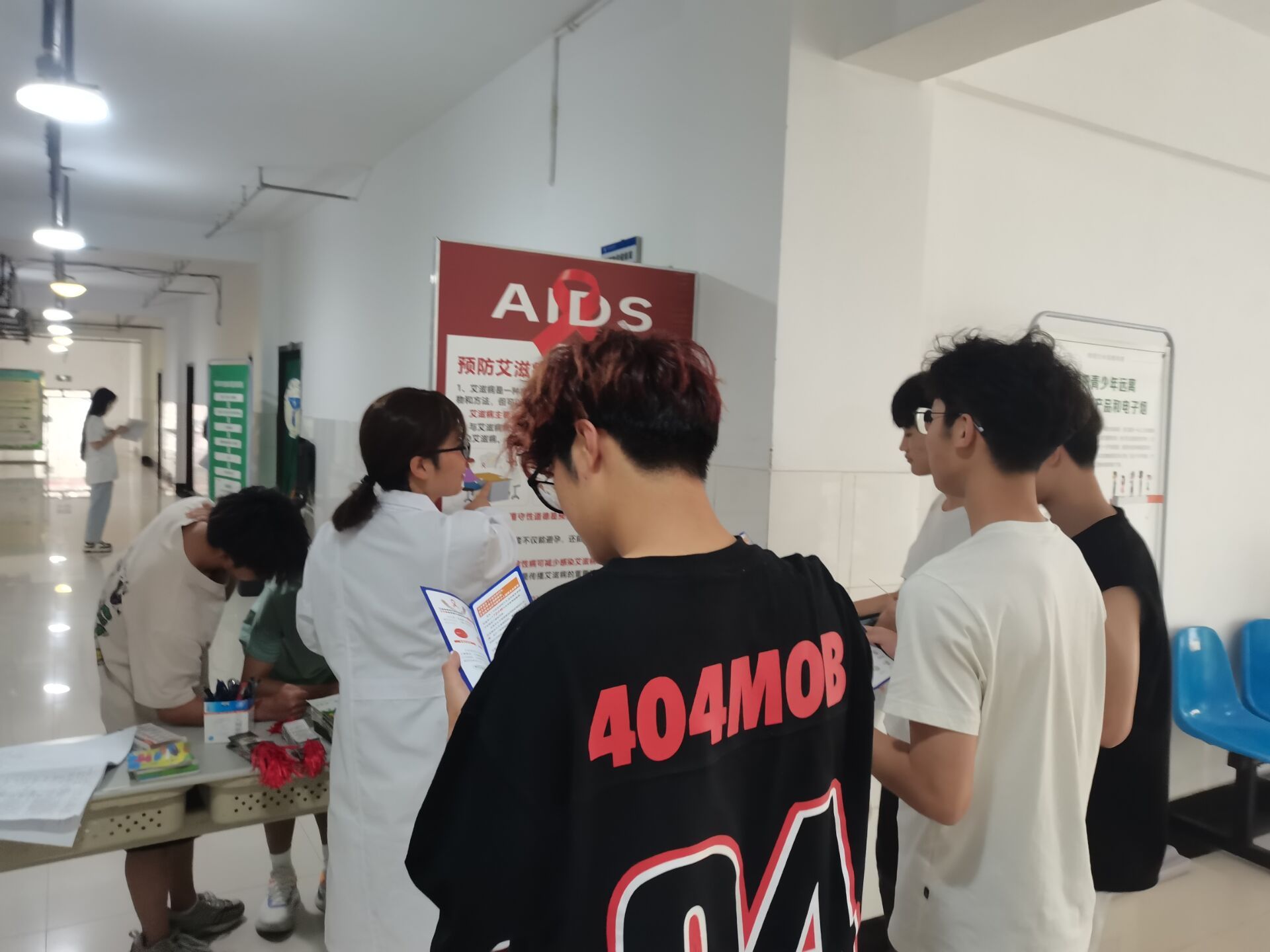 为营造学校知艾防艾的良好氛围,本次活动通过LED屏滚动播放宣传语 “携手防疫抗艾,向艾滋迈进-学会保护自己,检测是第一步”、摆放艾滋宣传展板、向活动现场学生发放宣传小册等方式,宣传艾滋病传播途径、预防方式及安全套的正确使用方法等知识,并现场答疑解惑,共计发放艾滋宣传小册105份。