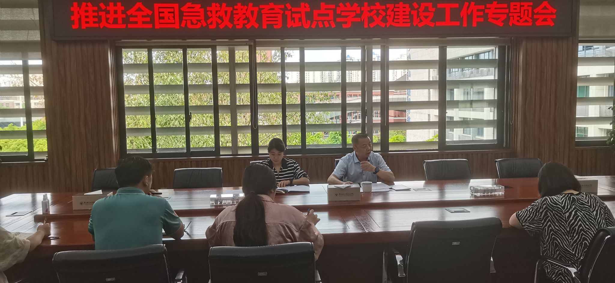 2024年5月16日下午,刘洪光副校长在博德楼三楼会议室主持召开了学校全国急救教育试点学校建设工作推进会,后勤保障处、教务处、党委学生工作部、党委宣传部、校团委、体育与国防教学部、智慧健康学院负责人参加了会议。自2023年我校成功入选第二批全国急救教育试点学校名单以来,学校严格落实教育部“以提升学生健康素养为核心,以普及急救知识和技能为重点,以提高校园应急救护能力为目标”的指导意见,通过开展急救知识普及、配齐急救设施配备、加强急救技能获证培训等工作,保障学校急救教育试点工作的顺利开展和高质量推进。