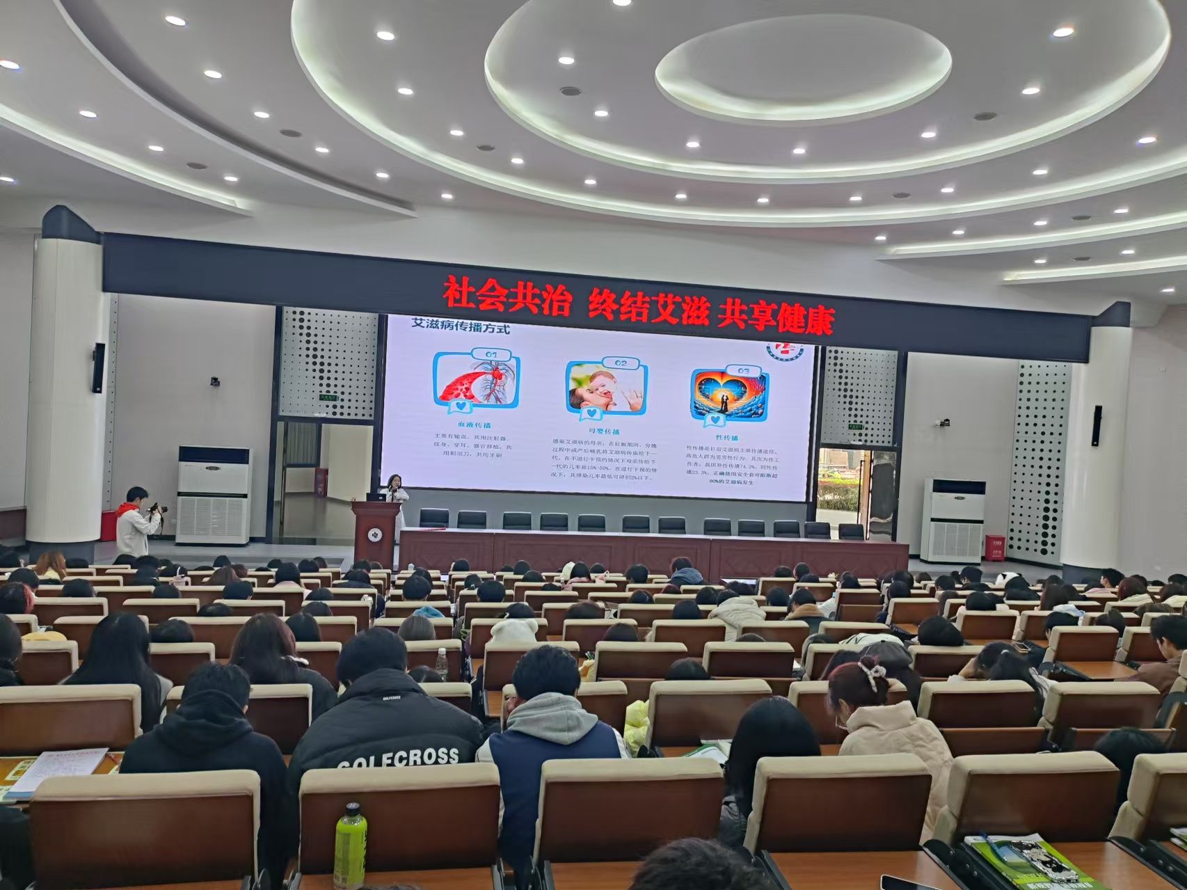 12月2日,特邀陈家桥医院传染科专家来我校博远厅,以讲座的形式,围绕“社会共治 终结艾滋 共享健康”为主题,从认识艾滋病和性病、暴露前后阻断、安全套推广、检测流程、快检试剂使用方法等专业知识与师生们分享艾滋病防治的相关知识,共计430人参加。