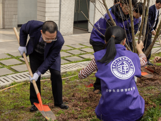 草木蔓发,春山可望。3月12日,由重庆电子科技职业大学主办,基建后勤处、党委学生工作部、党委宣传部承办的"根植六十载,绿动新篇章"首届校园植树节活动圆满举行。党委副书记、校长聂强,党委副书记龚小勇,党委常委、副校长黄爱明,党委常委、副校长刘洪光等校领导,与党委学生工作部、基建后勤处及二级学院师生代表共100余人齐聚校园,挥锹培土、播种希望,为学校六十周年校庆献礼,开启绿色校园建设新篇章。首届校园植树节活动仪式由党委常委、副校长刘洪光主持。